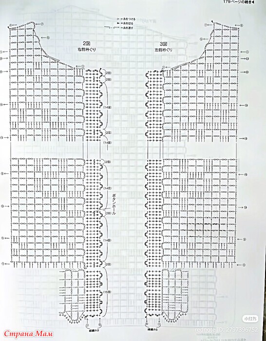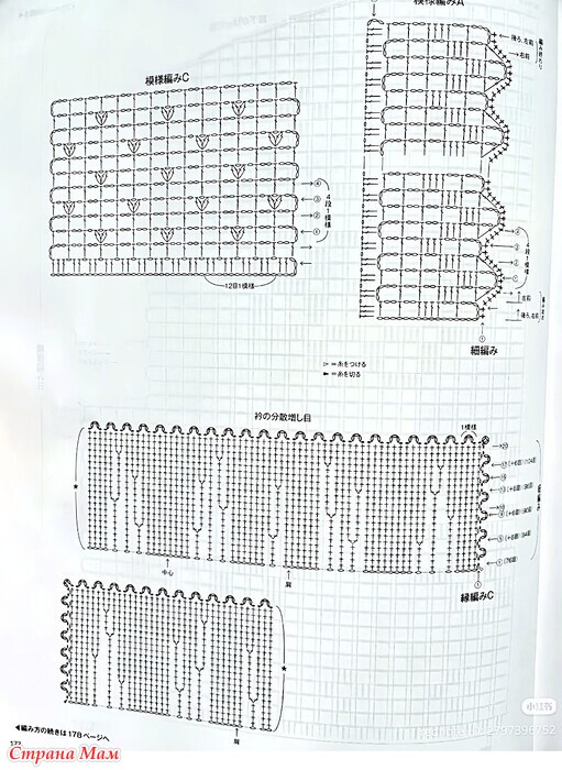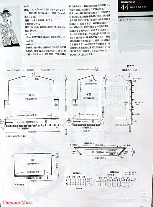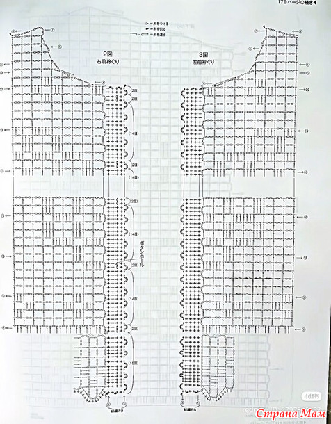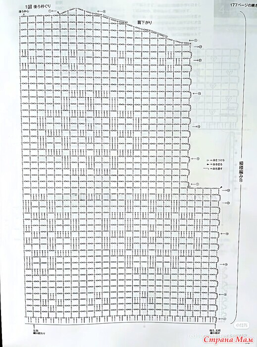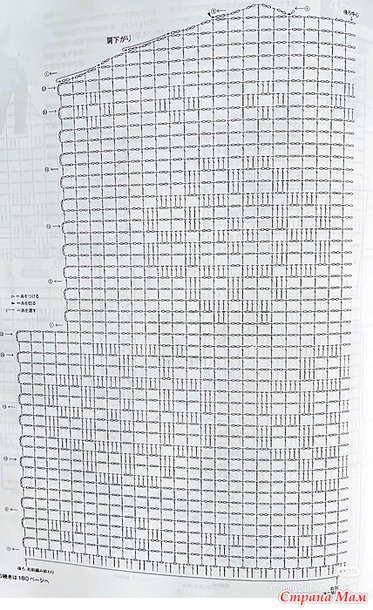 Основная часть, рукава... Начните вязать нижний край, набрав воздушную петлю, затем провяжите узорчатой ​​вязкой. Для спинки и переда наберите петли нижнего края и провяжите узорчатой ​​вязкой, следуя схеме.