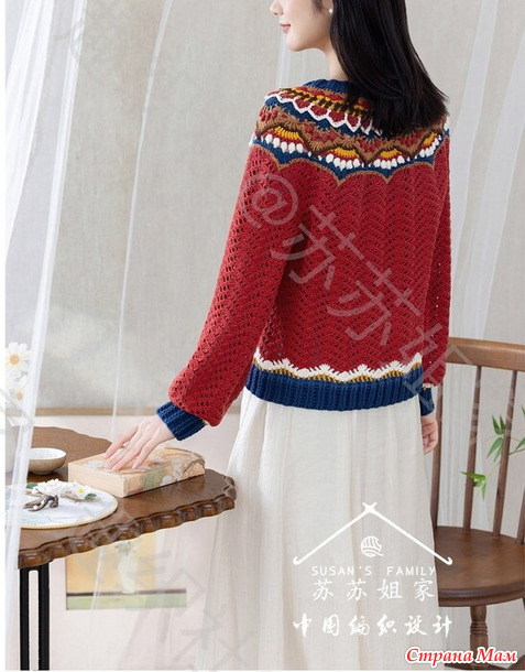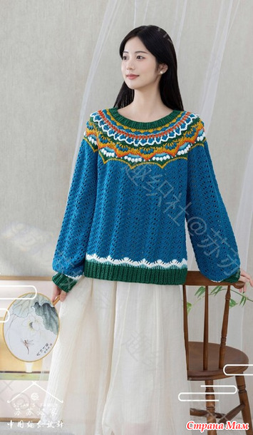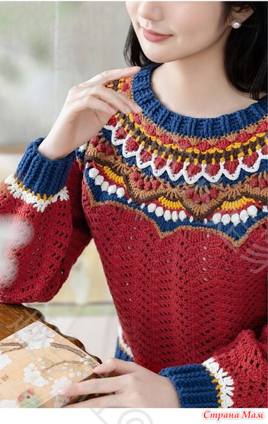 Этот свитер состоит из нескольких частей: кокетки, передних и задних складок, основной части, низа, рукавов и выреза горловины.