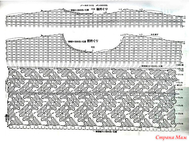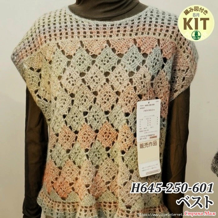 Как вязать: Используйте одну нить пряжи. Начните вязать в тот же день, когда вы свяжете цепочку из той же пряжи, и провяжите узор в числовом порядке. Поднимите петли узора А, провяжите узор В с лицевой стороны воротника и узор с изнаночной стороны. Сшейте цепочку на плечах и соедините края. Провяжите подол кругом вокруг воротника и манжет.