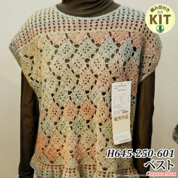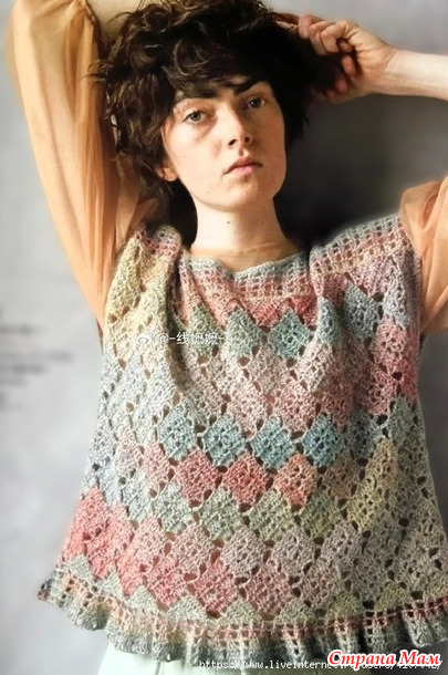 Жилет из секционной пряжи выполненный в силе баккара. Крючок.