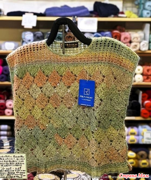 Пряжа отличается интересным изменением цвета, напоминающим плитку, чтобы создать комплект. Плотное вязаное полотно создает красивый силуэт.