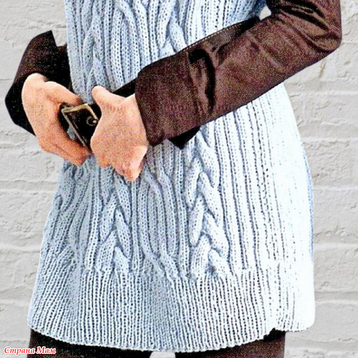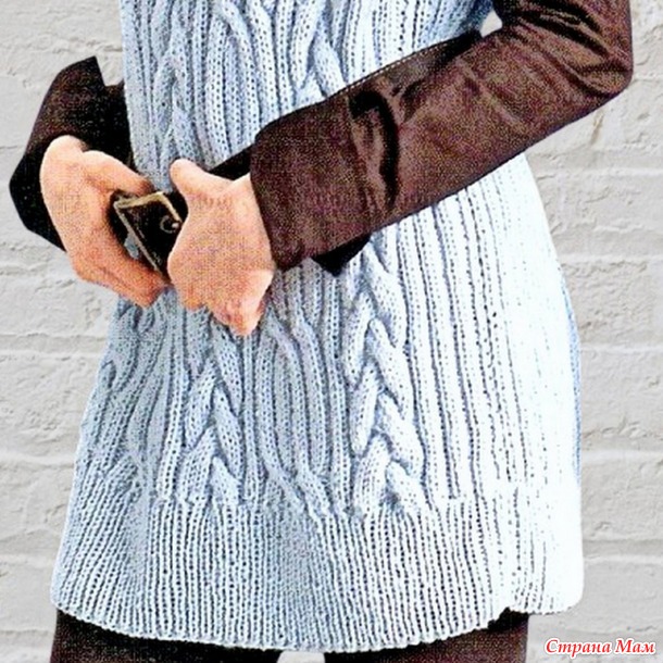 Узор из кос (ширина 104 п.): * 20 п. косы А, 22 п. косы В, повторить от * 1 раз, 20 п. косы А.