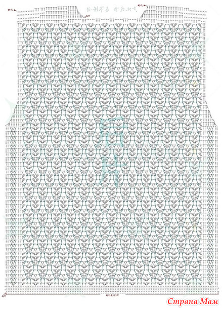 Примечание: Все столбики с накидом на лицевой стороне провязываются с одной стороны. Будьте осторожны, чтобы не провязать изнаночную сторону при переворачивании простыни.