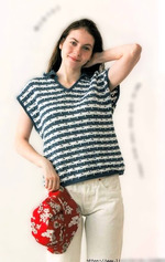 Полосатый жилет с треугольным вырезом и небольшим воротничком. Крючок.