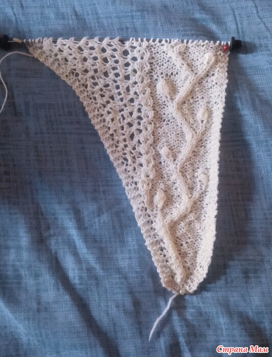 Начала вязать подаренную шаль. Красивая, необычная. Пришлось повозиться с переводом