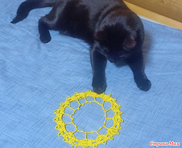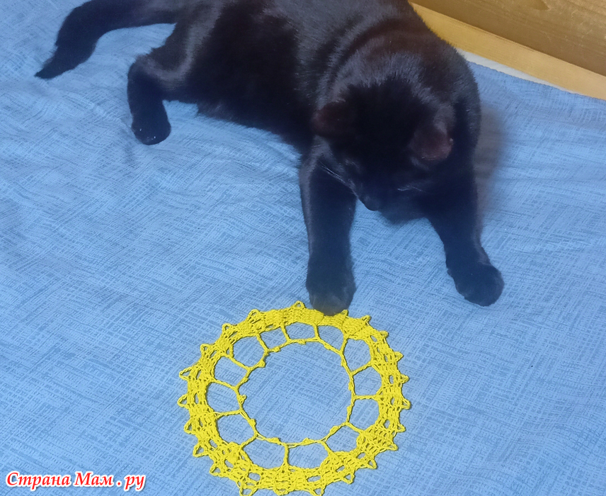 Может, даже схему отрисуюКазалось бы, спокойно довяжи начатое. А тут как раз в Школе для шалуний https://www.stranamam.ru/community/13556984/ обсуждали красивенные шали в технике брюггского кружева крючком. И ведь крючком-то я вязать не люблю, но так захотелось. Несколько дней вынашивала идею. И попробовала связать небольшой элемент. Ромашка. Кот оценил