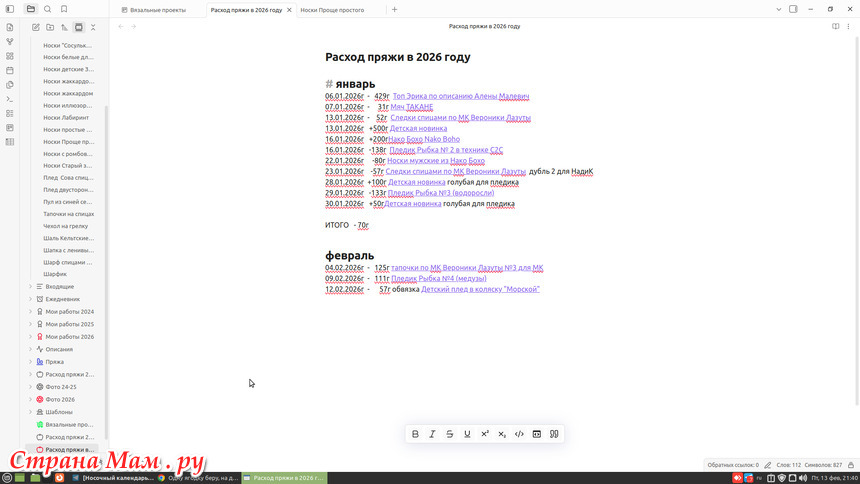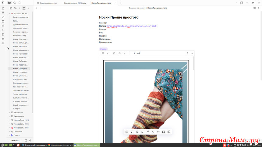 Здесь уже подготовлено описание. Остальное заполню, когда начну вязать, при этом Пряжа выбирается из списка и можно перейти на её характеристики.
