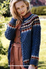 Кардиган с жаккардовым узором «БОХУС» от Sisko Skivi. Спицы.