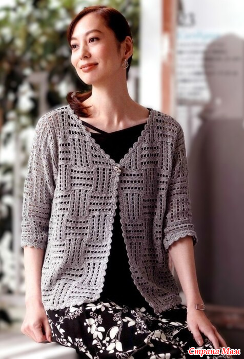 Кардиган из квадратов связанных в разных направлениях. Крючок.