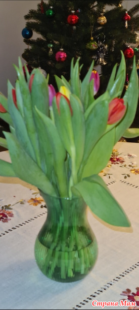 ЗЫ Розы - это фиговая идея для зимы. Они уже сейчас полудохлые. Завтра додохнут окончательно. Тюльпаны неделю бы стояли без проблем. Но девачки хочют розы