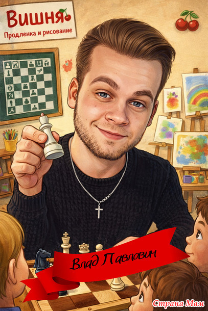Ну а Влад Павлович у нас почти с дня открытия. Вначале он замещал Дамира Вадимовича , пока Дамир Вадимович полностью с головой в школу не ушел работать. Теперь Влад ведёт свою группу шахмат в нашей студии.