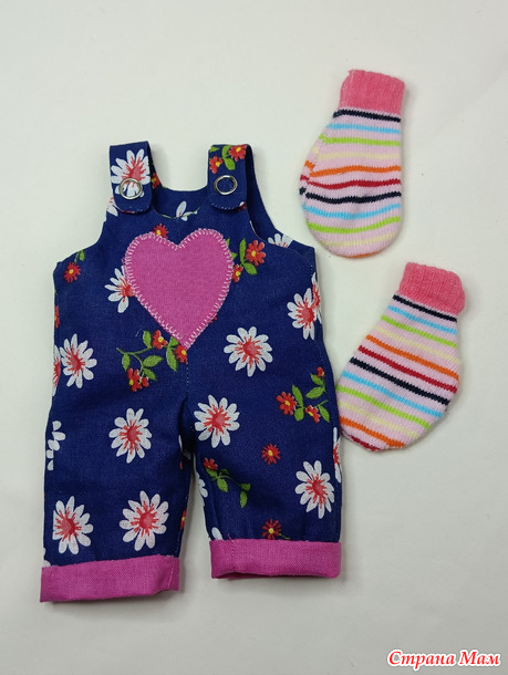 И рассмотрим комплекты отдельно. Комбинезон на кнопочках, с аппликацией сердечко и носочки.