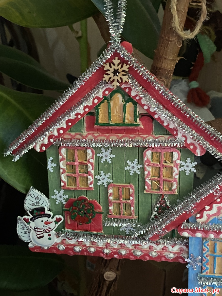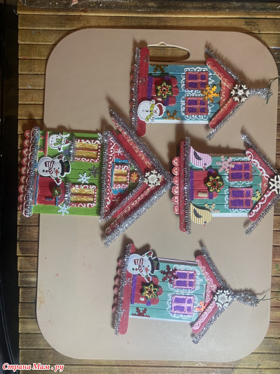Такие сказочные новогодние домики родились у меня перед Новым годом. Это поделки из вполне доступного сырья - палочек для мороженого.