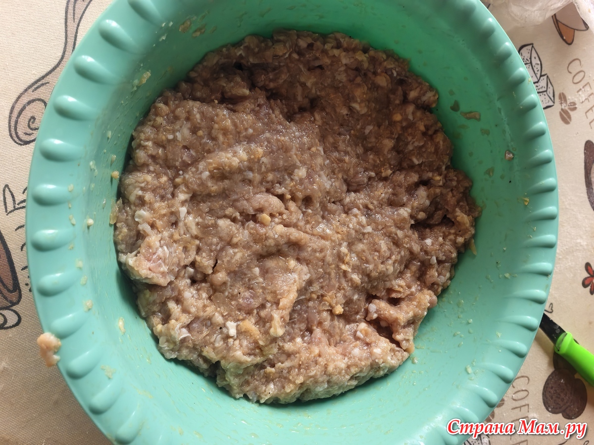 Сильно большая дырочка, от сюда и соприкосновение фарша со сковородой, вытекание сока и черный нагар. Делайте ее маленькой, или вообще без отверстия.