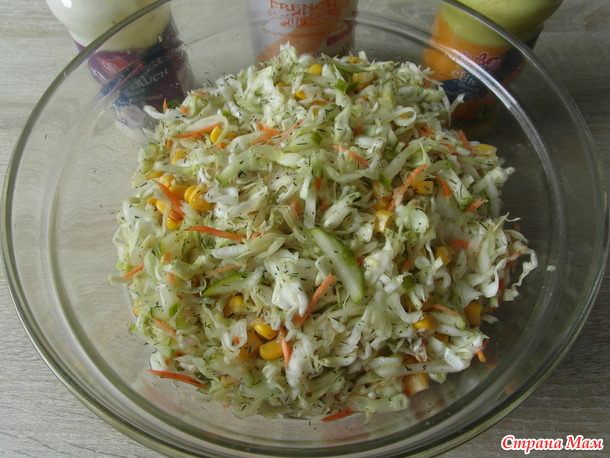 Вернее Дрессинг стоял рядом, кто какой хотел, тем и поливал. Салат делала на весь день, если сразу заправить поплывет.