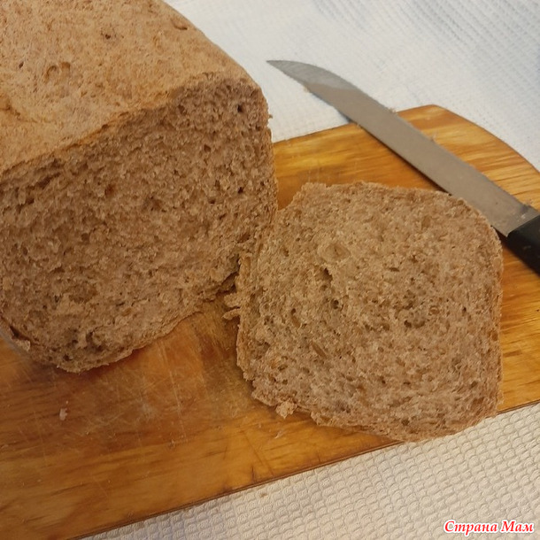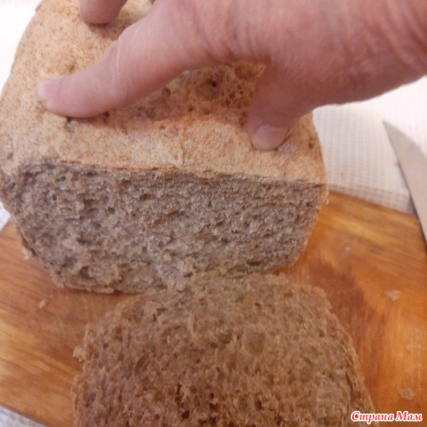 Купила новые дрожжи Ангел и сегодня в 18 часов поставила выпекаться хлеб по новому рецепту, который обнаружила на пакете ржаных отрубей Дивинка. А рецепт такой: вода 1 стакан, мука пшеничная 1 сорт - 2 стакана,отруби ржаные 8 ст. ложек, соль 1 ч.л, сахар 0,5 ч.л, дрожжи сухие - 1,5 ч.л, я еще добавила семена подсолнечника и ложку оливкового масла, установила режим Классический, корочка - средняя, вес 750 г (не знала, сколько получится). Запустила ХП, дождалась окончательного сигнала и получила пышный, с хрустящей корочкой, весом 500 г хлебушек. ХП работала отлично, без всяких заморочек...
