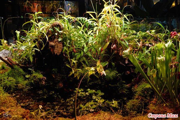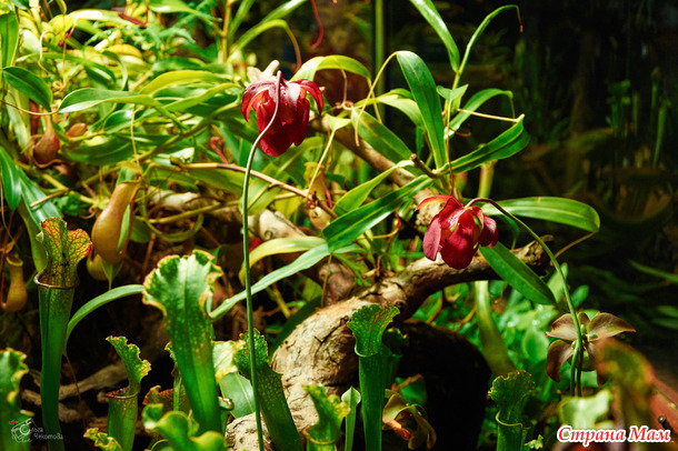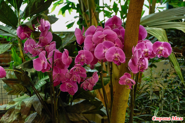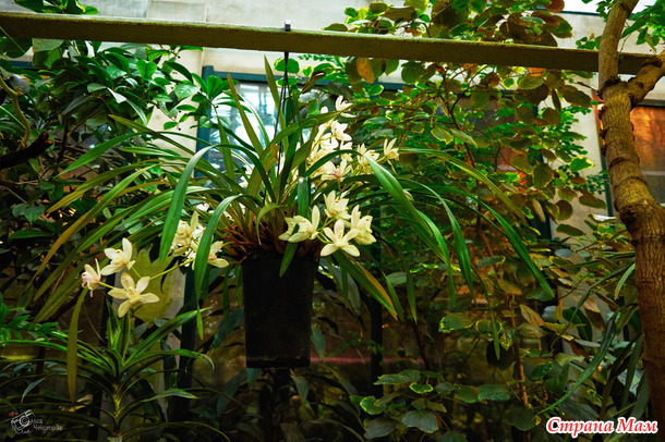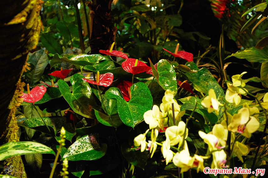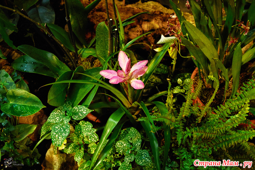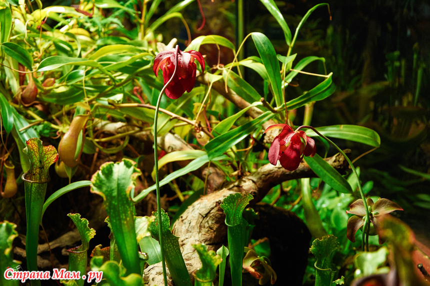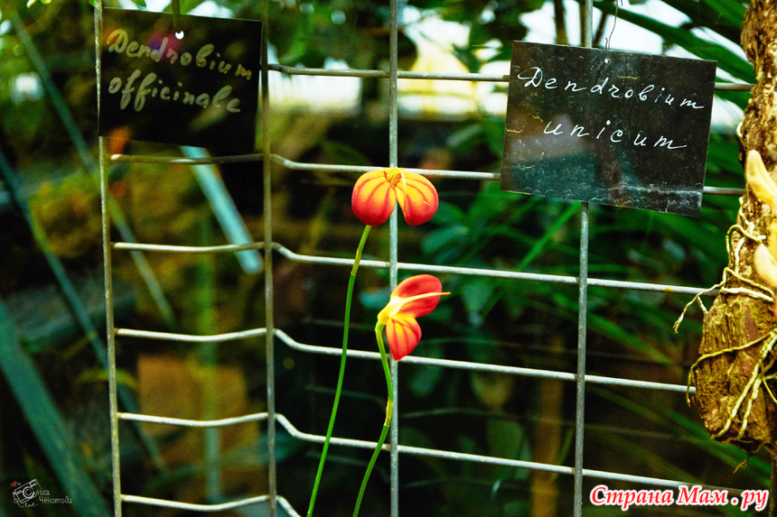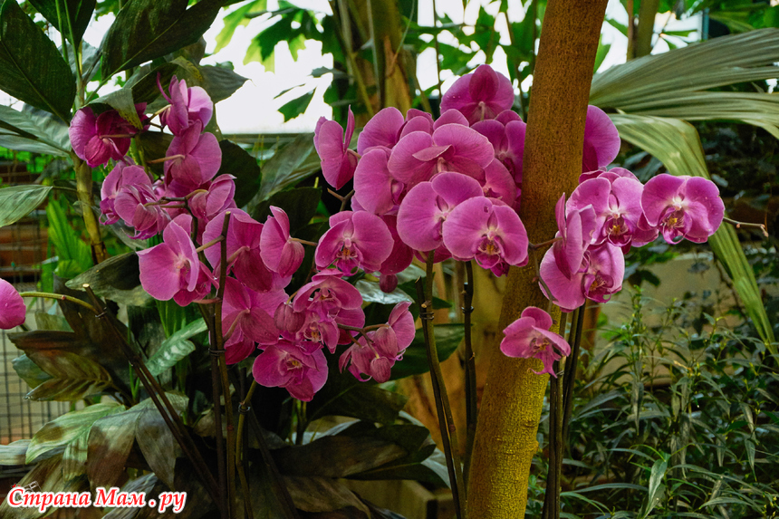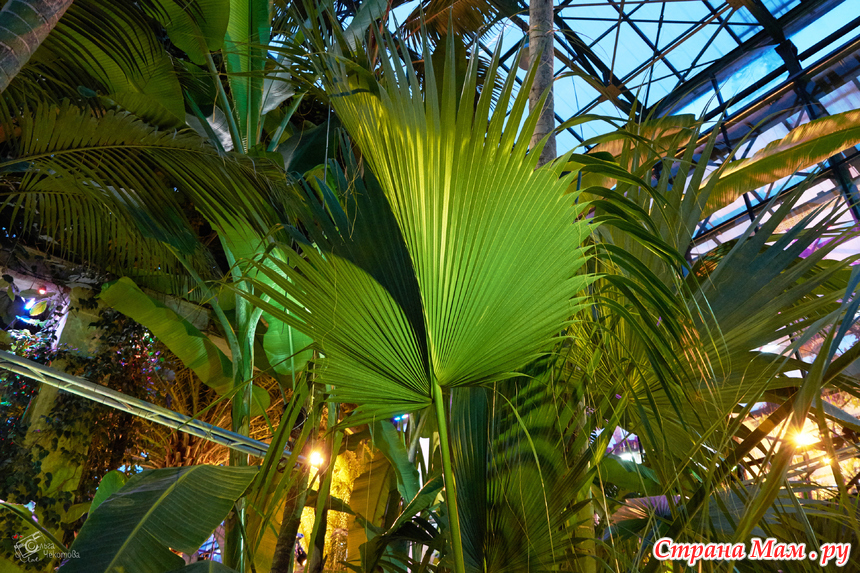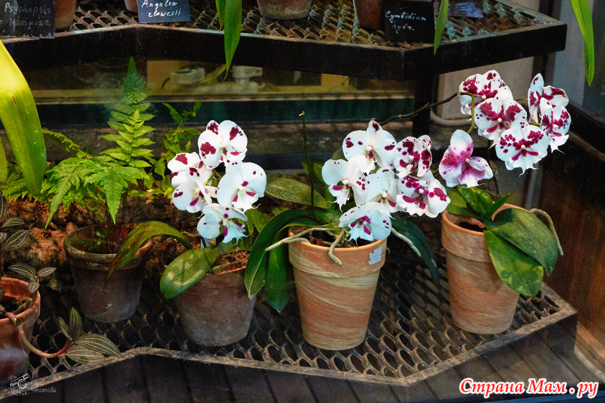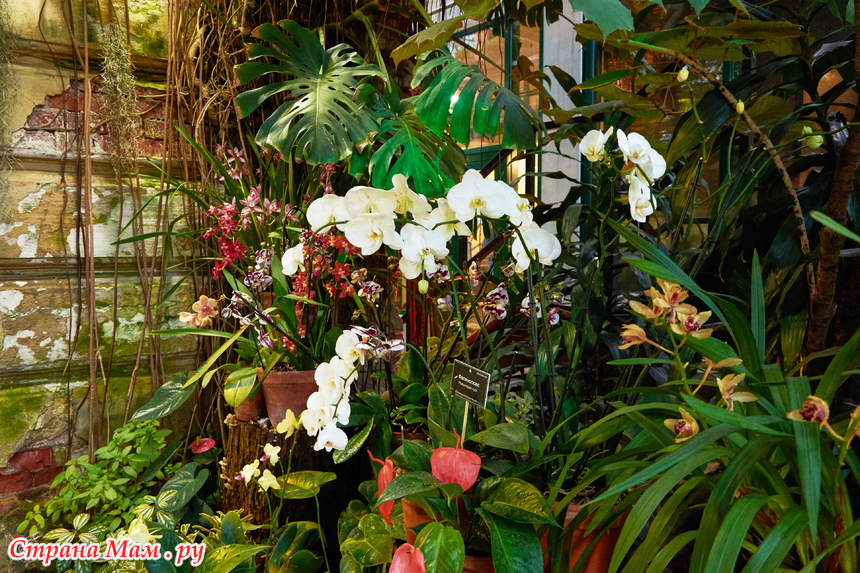 Пальмовая — здесь пальмам по двести лет, они уходят под стеклянную крышу, и среди этих гигантов прячутся лианы, бананы и хищные растения. А ещё — орхидеи. Много орхидей.