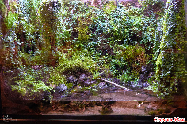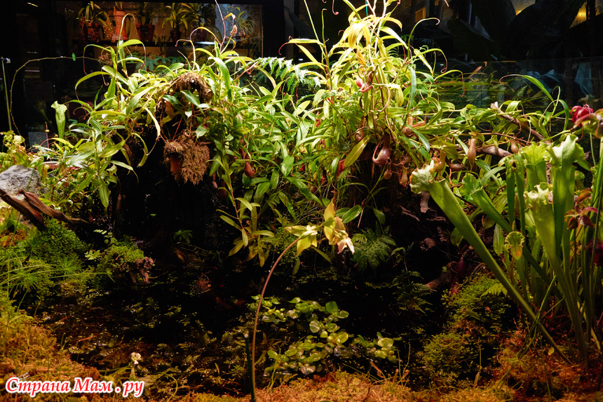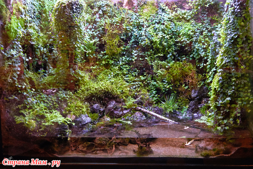 Во входной зоне попадаю на временную экспозицию аквариумов с имитацией разных природных зон. Один из них мне особенно откликнулся - Костромская тайга