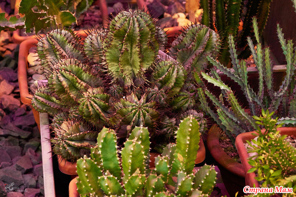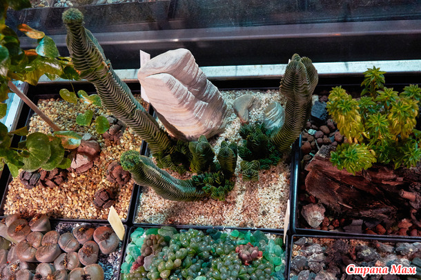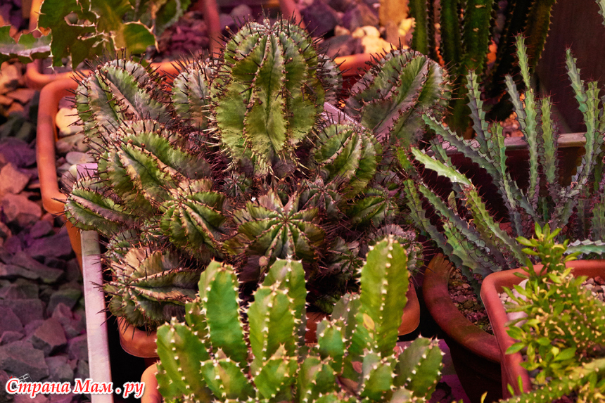 Суккулентная — царство кактусов и агав. Какие-то упитанные и колючие, какие-то — нежные и словно бархатные. Некоторые выше человеческого роста. Контраст с нежными орхидеями огромен, но выглядит это очень красиво.