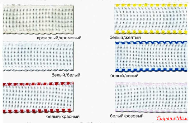 1. Лента (основа для вышивки). Варианты:а) готовая лента от Гамма, б) самостоятельный пошив или в ателье (если в запасах есть канва метражом, отрезать полосу и по периметру обработать косой бейкой в тон будущему сюжету, у меня это голубой цвет, см. фото), в)ленточная канва (продаётся разной ширины и длины, чем хороша, что уже обработаны края, не сыпется, жёсткая. удобная для вышивки всем, чаще аида 14 каунта, но бывает и мельче).