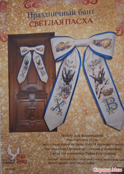 Давно я хотела сделать такое украшение, да всё не знала как правильно собрать, пока всё же не купила набор для вышивки пасхального банта от Клубок желаний (на примере этого фото и буду пояснять процесс).