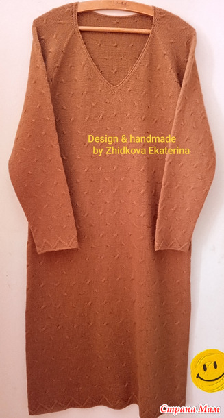 Была у меня стоковая полушерстяная пряжа неизвестного происхождения (примерно 1200 м в 100 г), и захотелось мне связать из неё платье.