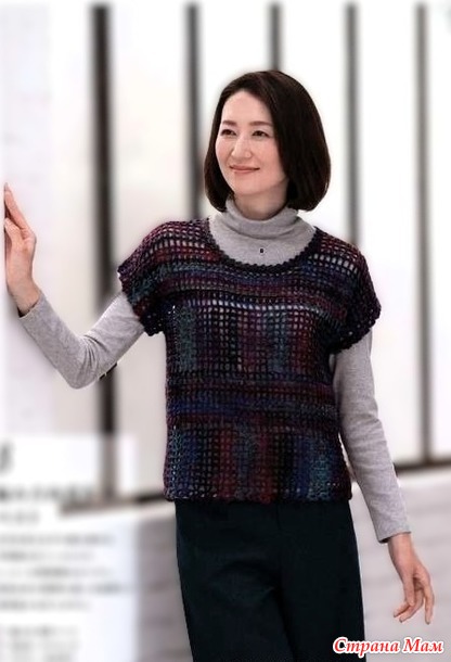 Ажурный жилет связанный в разных направлениях. Крючок.