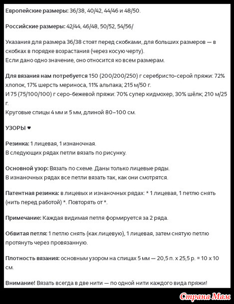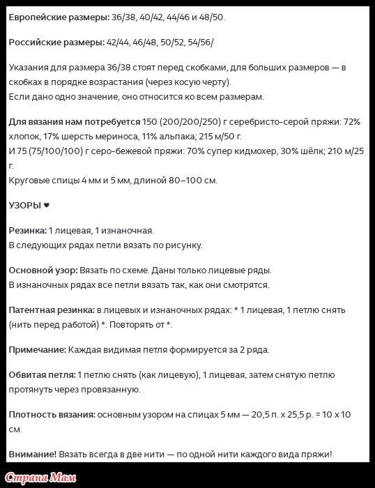 • Пряжа: 350 г серебристо-серой пряжи (70% акрил, 30% шерсть; 200 м/100 г).