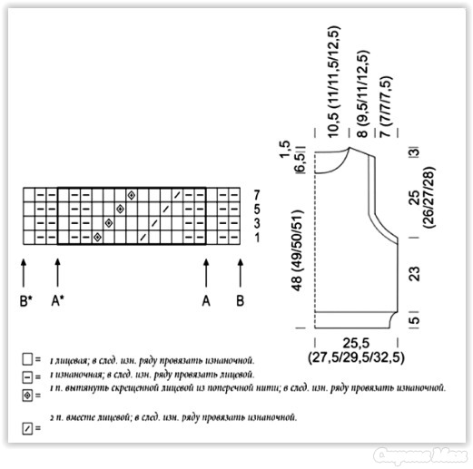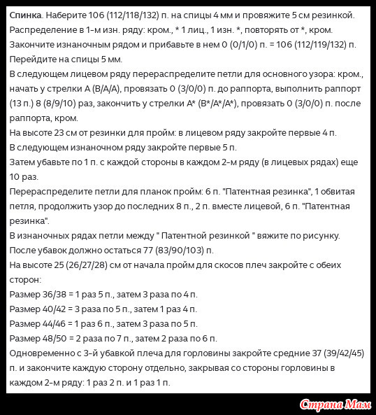 • Схема узоров: резинка 1x1 и узор «косы».