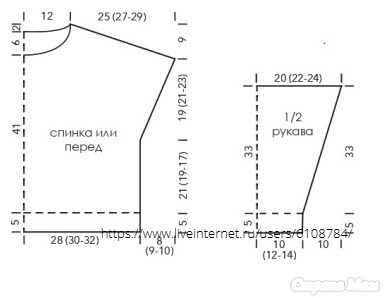 Данные для размера 46/48 стоят в скобках впереди, для размера 50/52– после тире. Если указано только одно число, то оно относится ко всем размерам.
