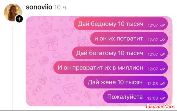 я уже замумукалась ему говорить, чтобы не все мне отдавал. он оставляет только на бензин и сигареты.