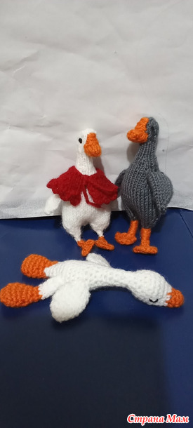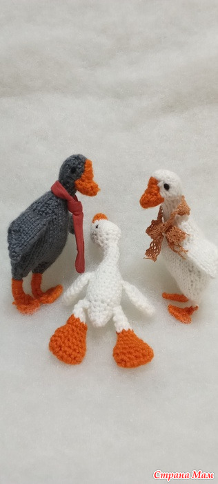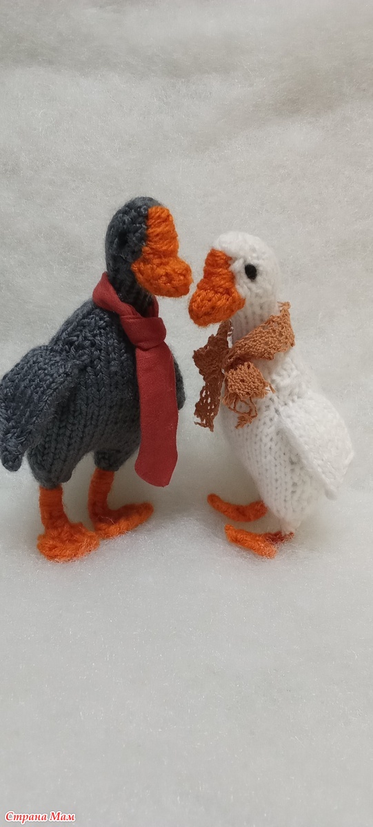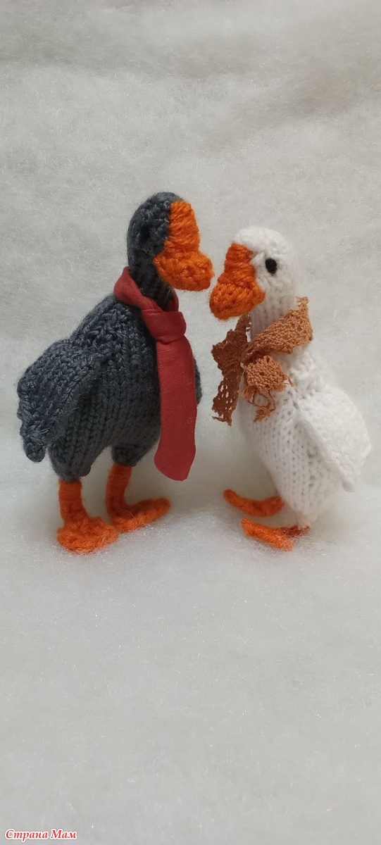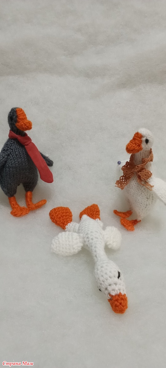 Гуси связаны крючком и спицами, пряжа - какая-то Пехорка.