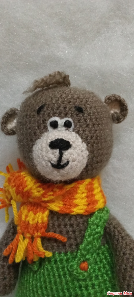 Хотелось сделать мишку максимально безопасным для игры, поэтому мордочку вышила. И добавила чубчик ещё!