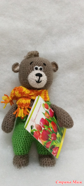 Я так решила, что этот мишка-топтыжка будет почтальоном.