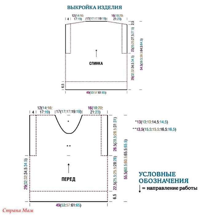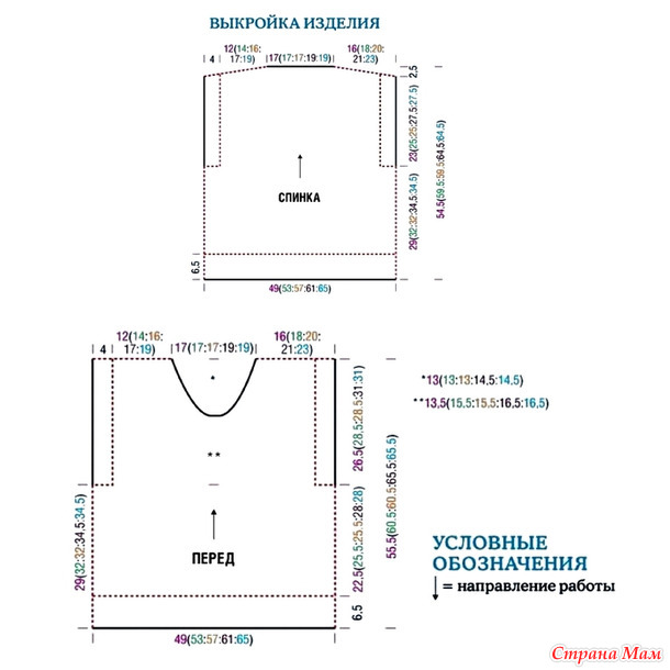 Внимание! Изделие вязать свободно без швов снизу вверх, начиная от нижней планки, связанной резинкой.