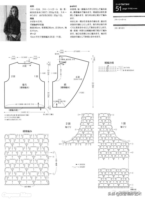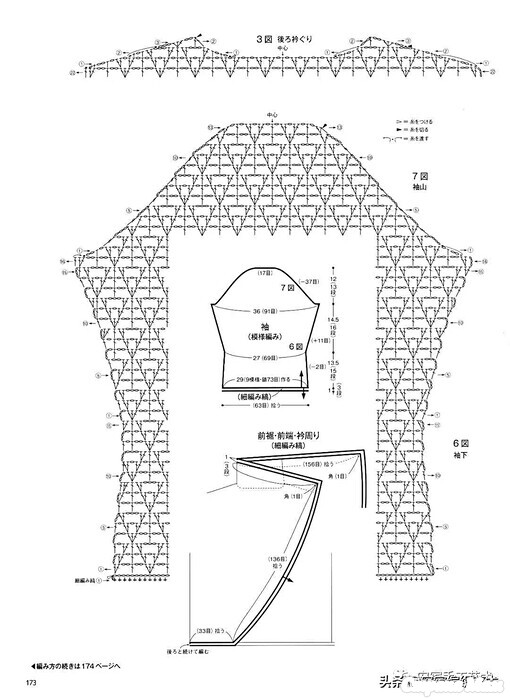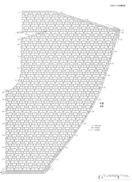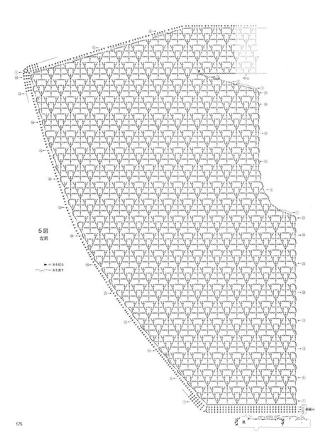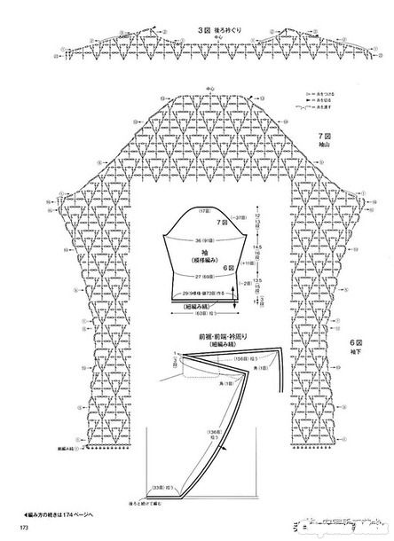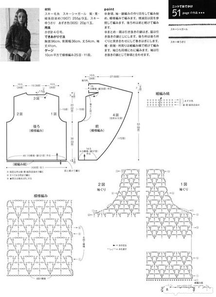 Основная часть, рукава... Начните с воздушной петли и вяжите узором. Для увеличения или уменьшения количества петель используйте схему. Воротник сзади вяжите в том же положении, что и перед.