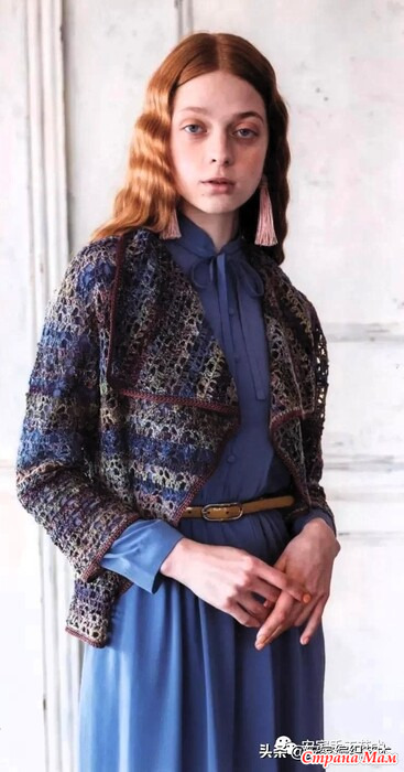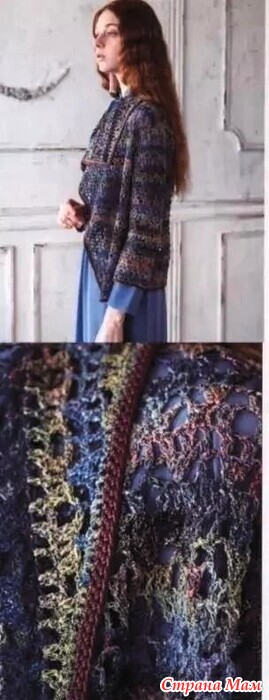 Краткое описание: Плечи сшиваются соединительным столбиком, боковые стороны также сшиваются соединительным столбиком. Для воротника спинки продолжайте вязать нижний край воротника спинки, передний край и окружность воротника столбиками без накида. Манжеты вяжите таким же образом. Рукава соединяются с основной частью изделия соединительным столбиком.