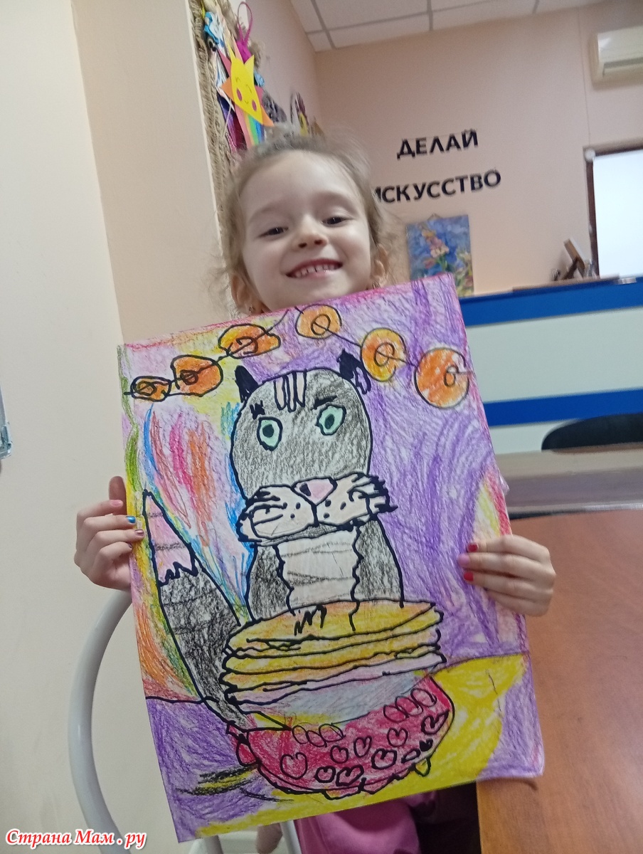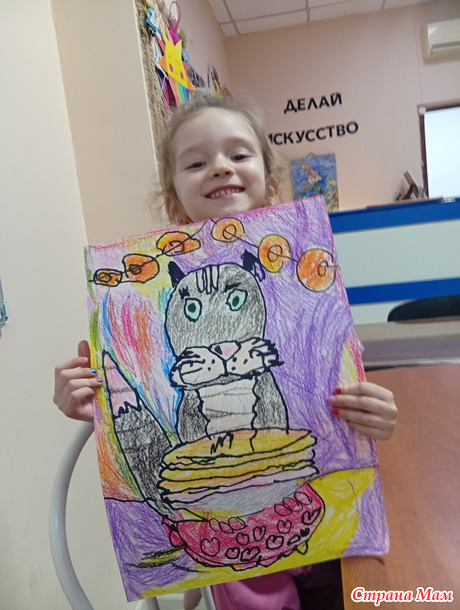 К вечеру поехала проводить своим малышам в студии занятие по рисованию. Предварительно заехала в канцелярский за бумагой и восковыми карандашами .