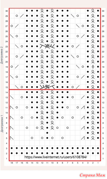 При плотности вязания 10х10 см (4х4 дюйма) у вас должно получиться 20 петель и 26 рядов, связанных по кругу ажурным узором. Смотрите видео )