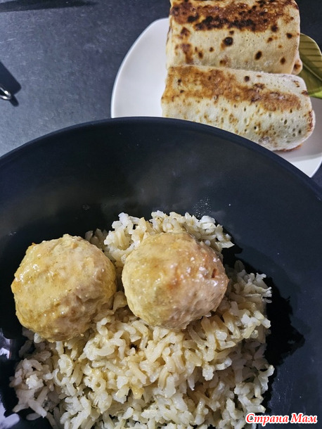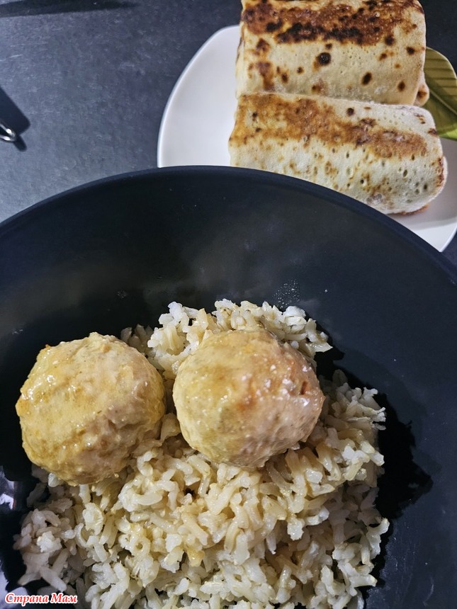 Суп был с фрикадельками и зелёным горошком, блины, конечно, куда же без них в масленичную неделю. Блины были с припеком из грибов и ещё пробовала шпинат добавлять в тесто, очень понравилось. В шпинатные блины делала начинку из крабовых палочек, творожного сыра и яиц. Хлеб пекла с цельнозерновой мукой.