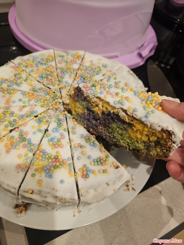 На неделе я варила суп из рыбных консервов, из тунца в масле. Еще куриный суп-лапша. Кролика в сметане тушила, фрикадельки из куринойгрудки и кабачка с рисом, капусту тушила с мясом, голланскую селедку с картошкой. Блины всякие разные. У племяша днюха была. Пекла ему разноцветный кекс. Спасибо большое Марго за рецепт!
