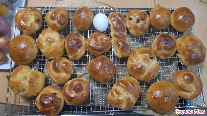 Булочки с изюмом хочите? Яйцо для понятия размера. А то некоторыея женсчина мне не верит