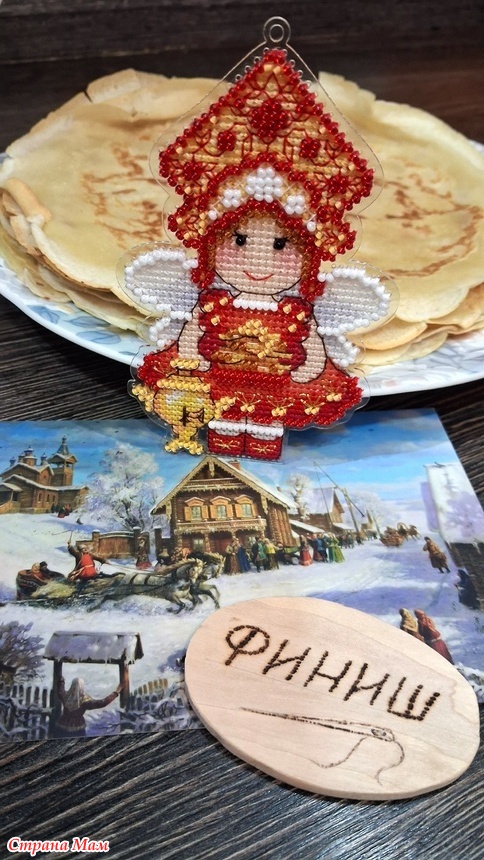 Очень хотелось вышить ее именно на масленичной неделе. И вот успела! Правда, осталось приклеить задник, чем сейчас и займусь.