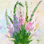 "Букет" - первая работа с этим материалом. Шпаклёвка заранее смешана с акриловыми красками и выкладывается на холст мастихином.