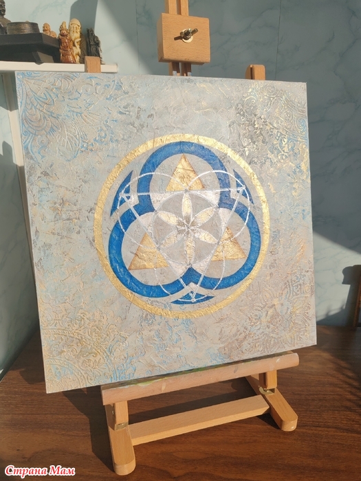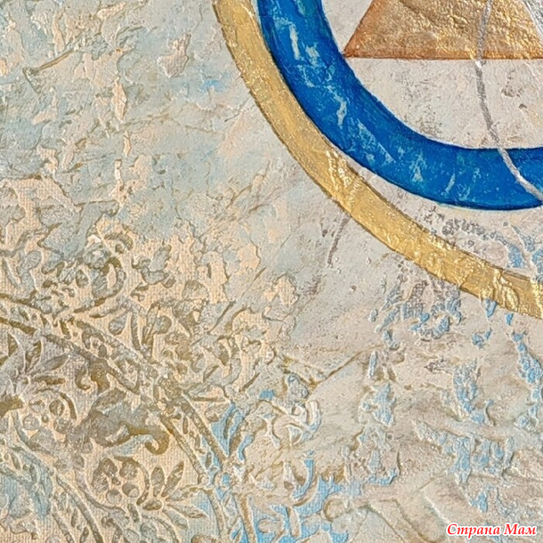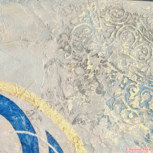 "Античное золото". Здесь сначала выкладывался рельеф, а потом использовались краски. Тут я экспериментировала с металлизированными акриловыми красками, смешивала в разных пропорциях золото, бронзу, серебро.