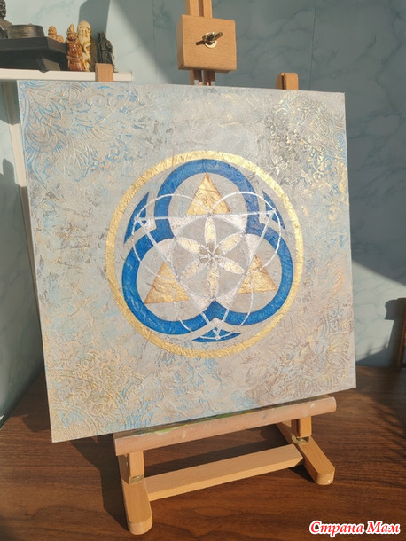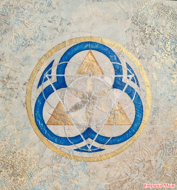 "Семя жизни". Настоящая фреска. Сначала создавался рельеф с использованием трафаретов, затем полотно расписывалось красками.