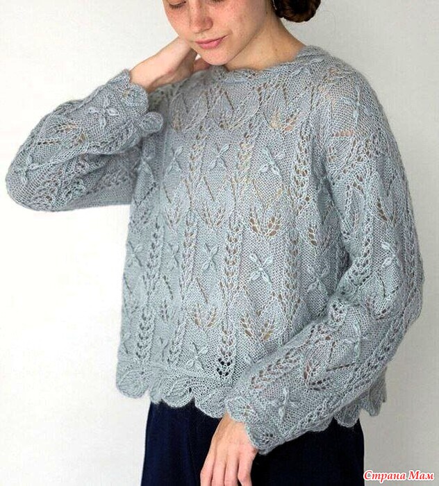 Ажурный джемпер из шерсти альпаки. Спицы.