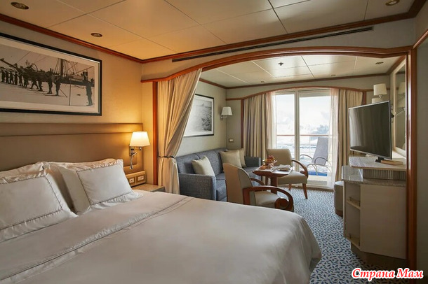 Всем пассажирам предоставлены просторные каюты с балкончиком.