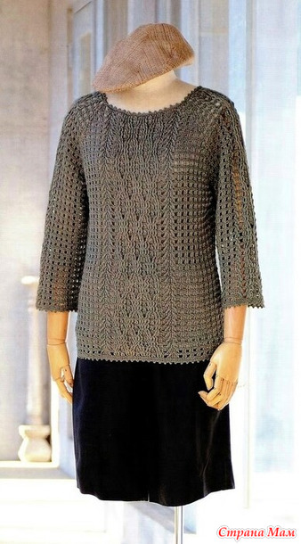 Свитер реглан сверху с узором араны.. Крючок.
