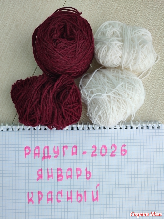 Красной пряжи в запасах не было, но нашлись остатки бордовой: